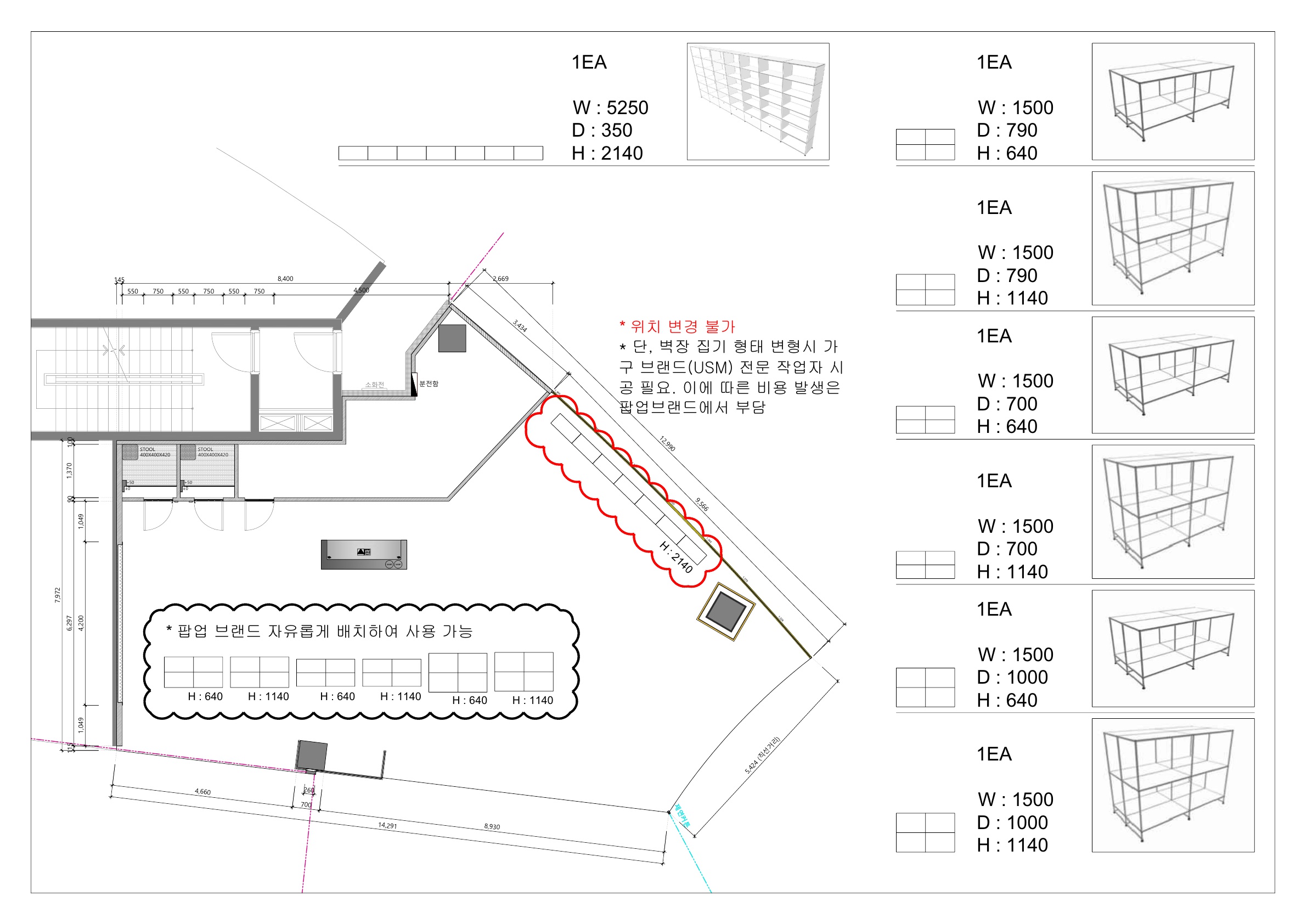 • 공간박스 2개, 거울 1개, 마네킹 1개, 벽장 1개, 테이블 6개, 행거 10개 등은 준비되어 있습니다. 나머지 집기는 브랜드가 준비합니다.